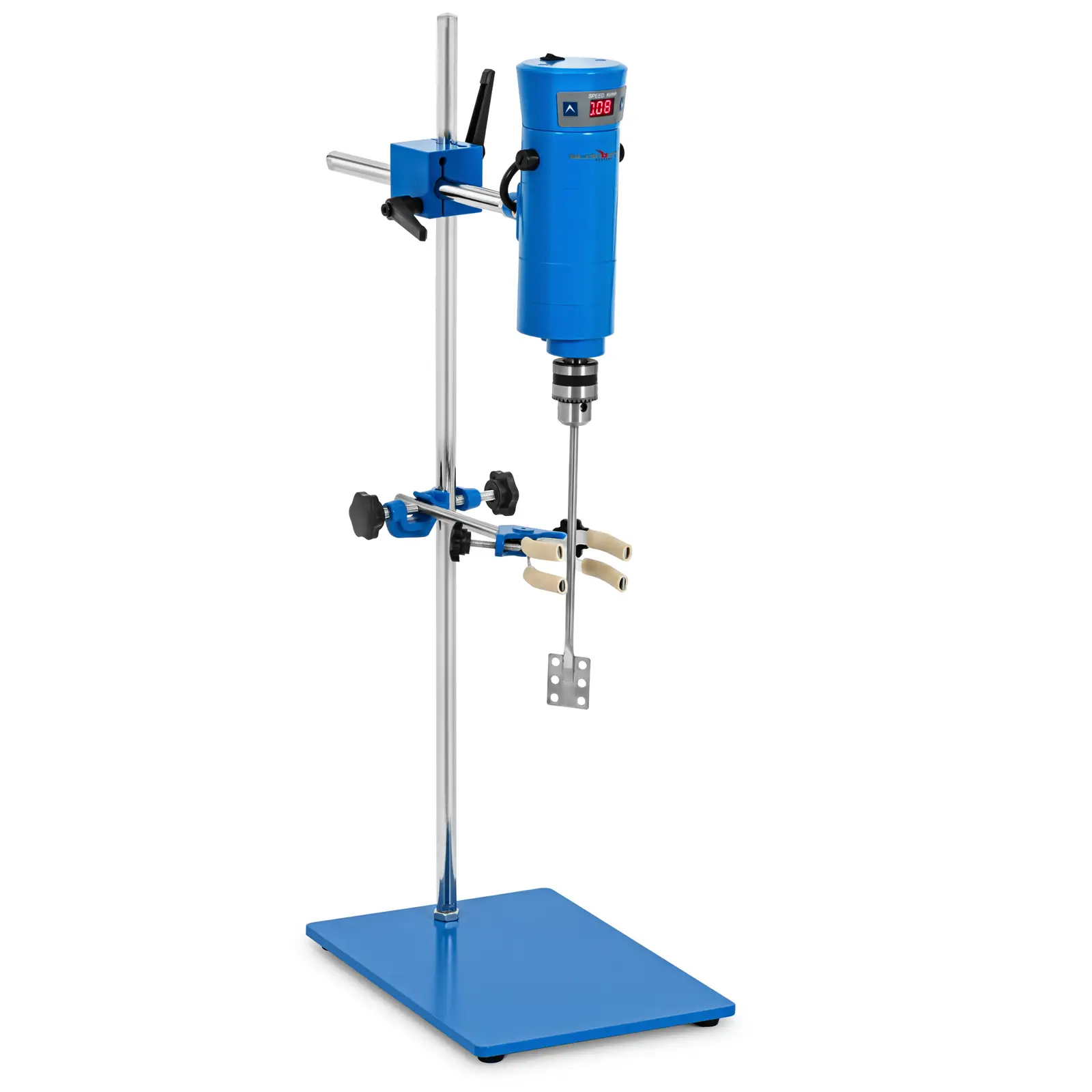 Litinová základna o rozměrech 215 x 310 mm zajišťuje stabilitu při míchání. Míchací jednotku s míchací tyčí drží stojan, na kterém lze nastavit výšku míchadla. Flexibilní držák nádob je určen pro středně velké nádoby. Pro optimální nastavení míchadla lze nastavit výšku, hloubku a úhel míchadla. K míchání použijte míchací tyče o průměru 2–10 mm, které lze v několika jednoduchých krocích vyměnit na otočné hlavě. Míchací tyč je součástí balení.